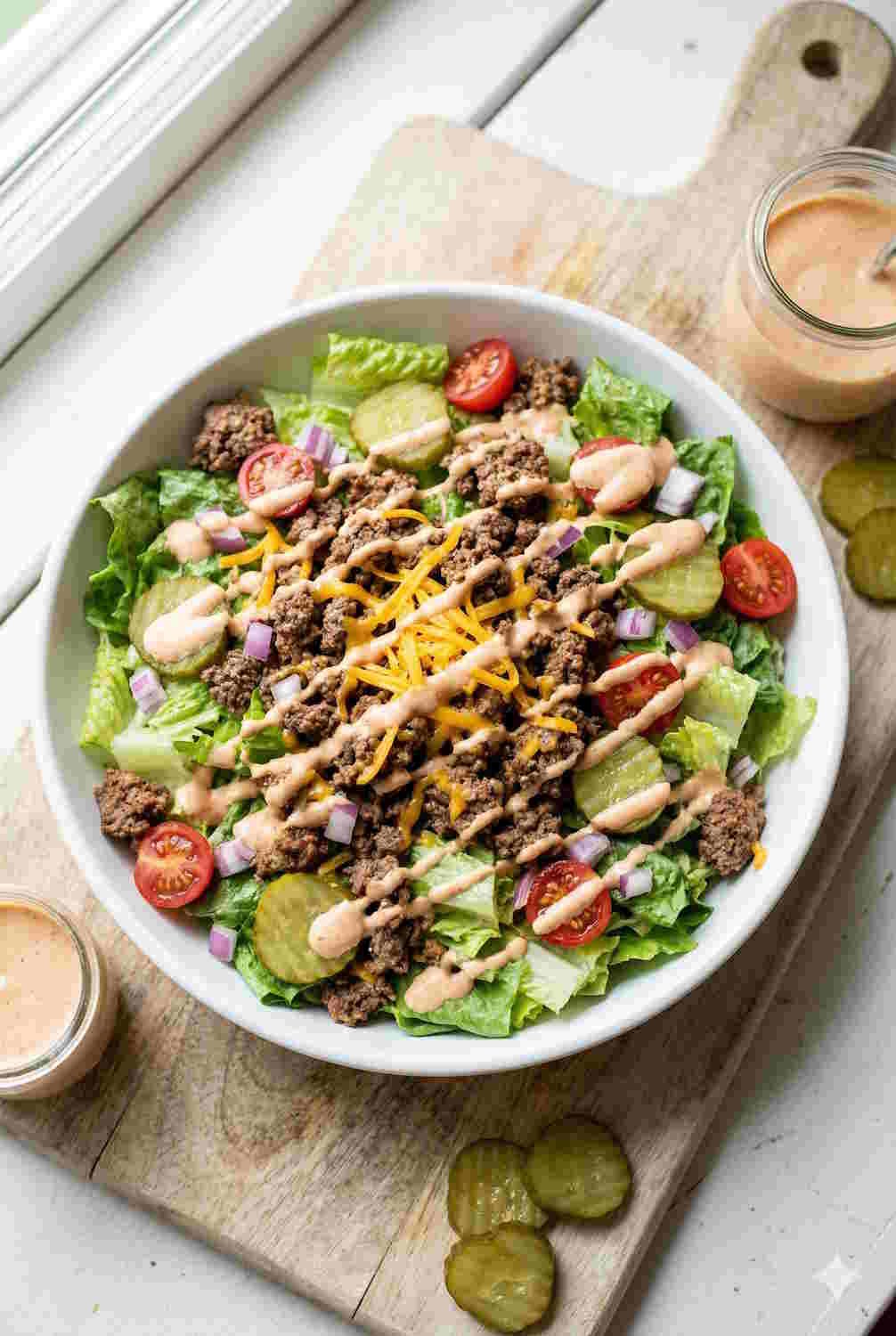 Sugar-Free Special Sauce: Most burger sauces are loaded with hidden sugars—sometimes 4-6g per tablespoon. This homemade version uses sugar-free ketchup and a touch of stevia for all the flavor without the glucose spike. For more diabetic-friendly salads, check out our 7 Best Protein-Packed Salads.