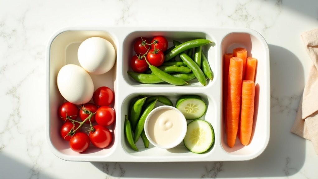 - Add a small container of hummus or Greek yogurt ranch dip for dunking veggies (just watch portion sizes).